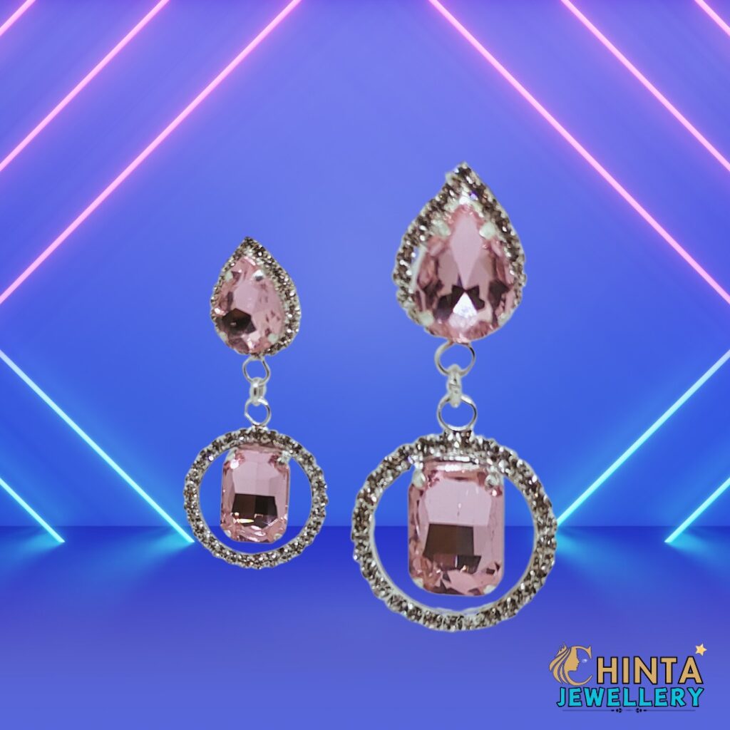 Pink Teardrop Drop Earrings with Crystal Halo – Chinta Jewellery Store