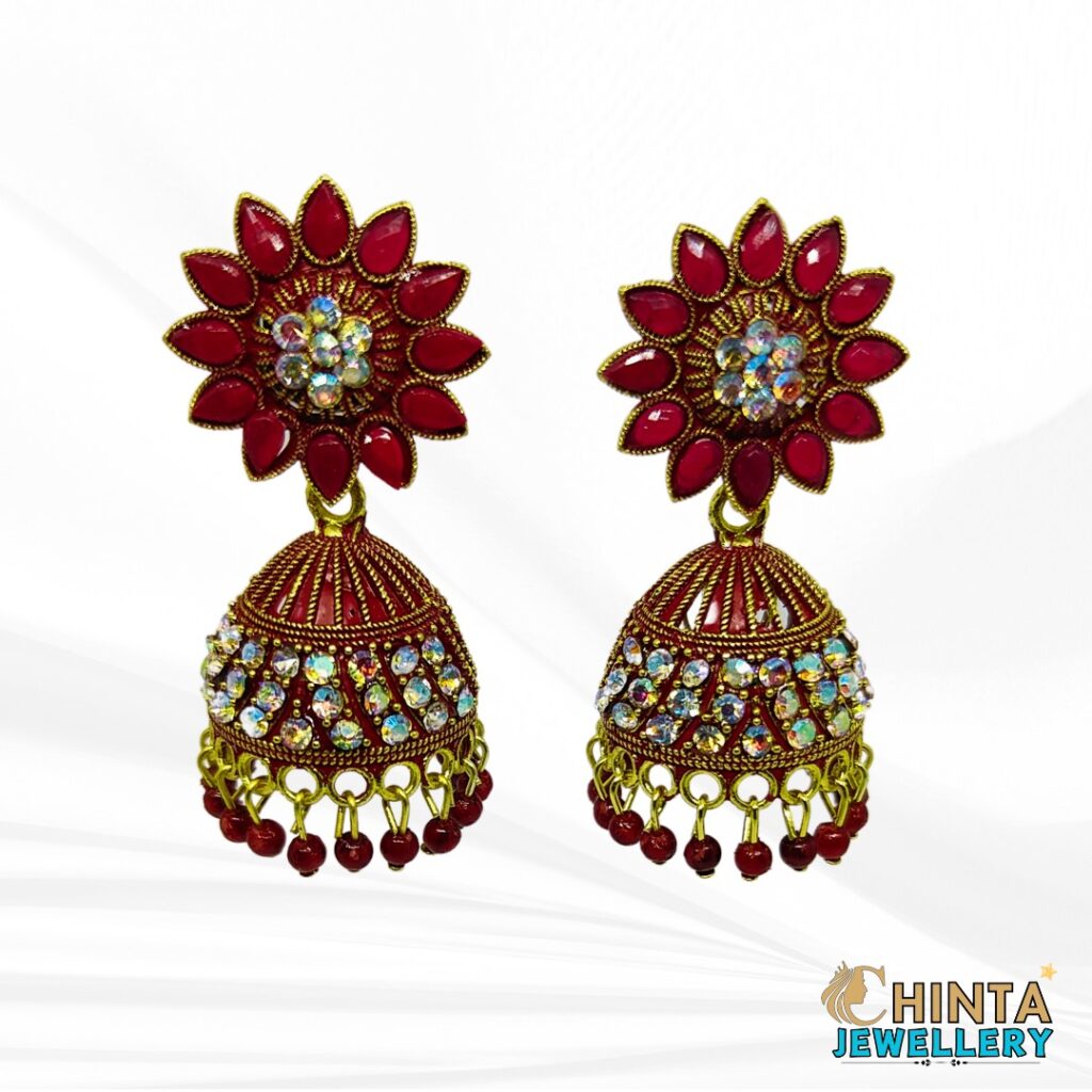 Traditional Red Jhumka Earrings with Flower Motif – Chinta Jewellery Store