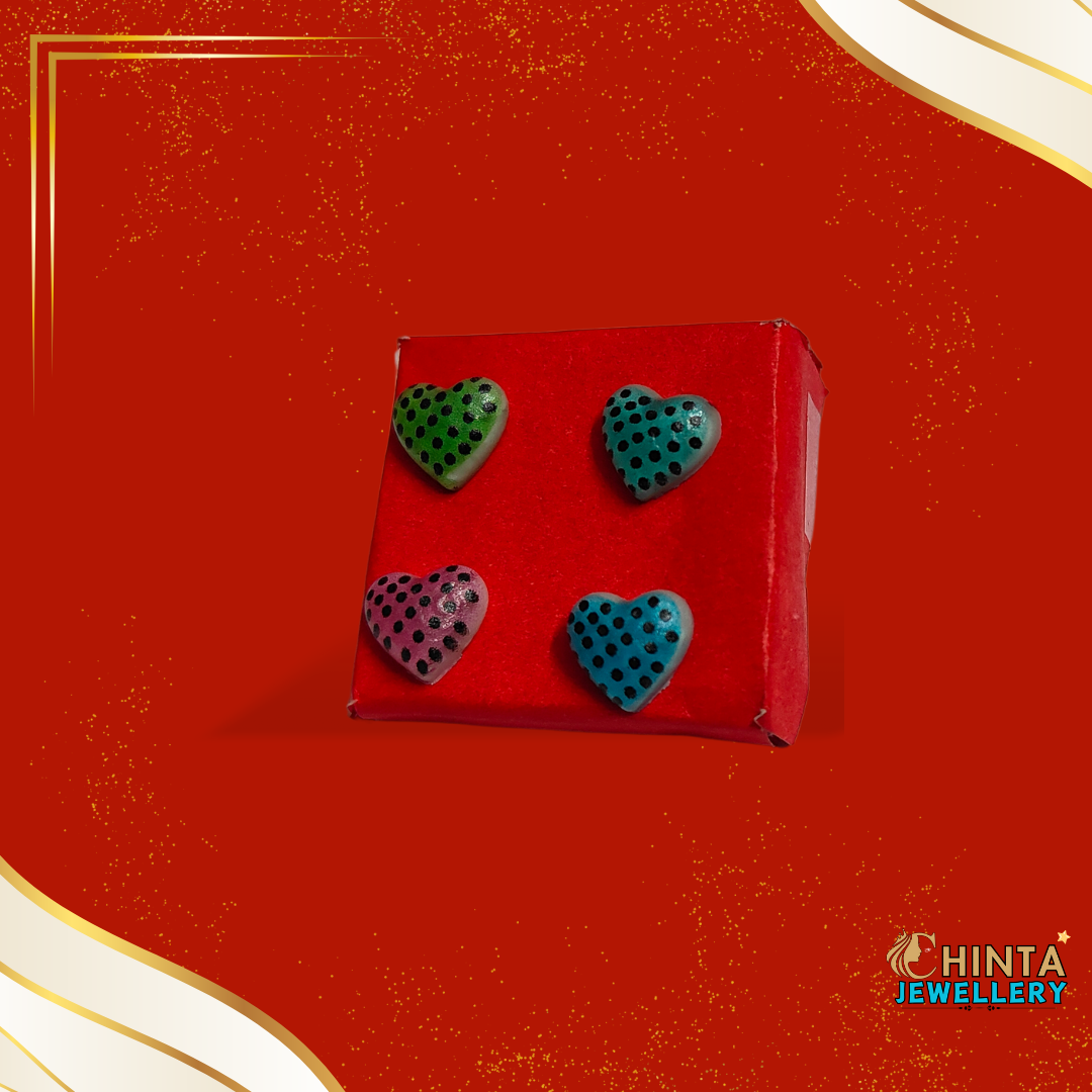- Set of 4 Heart Earrings: Includes green, blue, pink, and teal hearts with polka dot details.